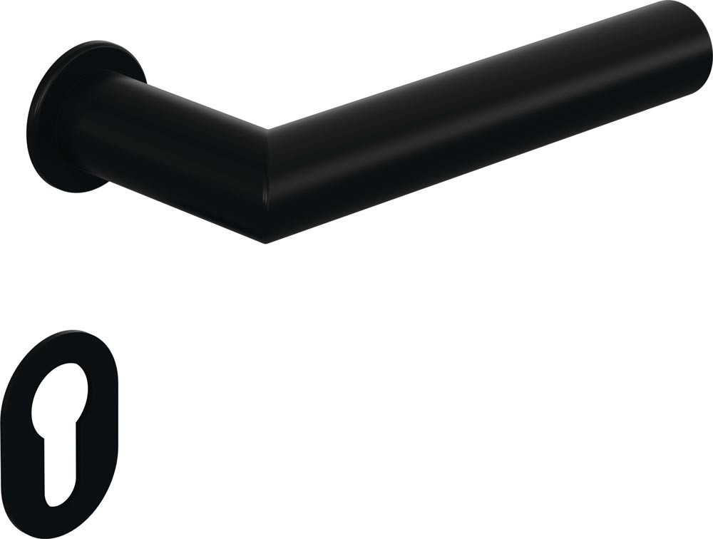 Zimmergarnitur mit Schlüsselrosetten · mit flacher Drückerrosette, Abdeck-Kappe aus mattem Polyamid, Türdrücker Modell 162.21PBM in Gehrungsform aus mattem Polyamid mit durchgehendem Stahlkern, Vierkantstift 8 mm, für Österreich 8,5 mm, mit Trapezgewinde · Fixierung der Drücker in einem Einpresslager und einer Polyamid-Gleitlagerbuchse · mit Schlüsselrosette 306PBM, 32 x 47 mm · Montage der Einpressbuchsen mittels Montagemutter mit Trapezgewinde, SW 19, mit einem Ringschlüssel SW 19 · die Montage wird empfohlen an stumpfen wie auch gefälzten Wohnraum- und Innentüren mit HDF-Deckplatte und Mittellagen aus Röhrenspan- bzw. Vollspaneinlage oder hochwertiger