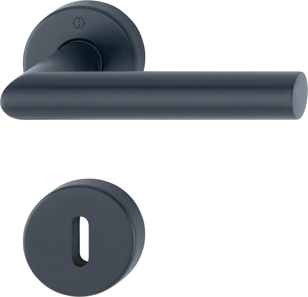 mit Schlüsselrosetten für Innentüren · geprüft nach DIN EN 1906: 37-0140A, Objekt-Garnitur · F9714M schwarz matt, Vierkant: 8 mm, mit Aufsteck-/Reduzierhülse 8/8,5 mm · TS = 37 - 42 mm
