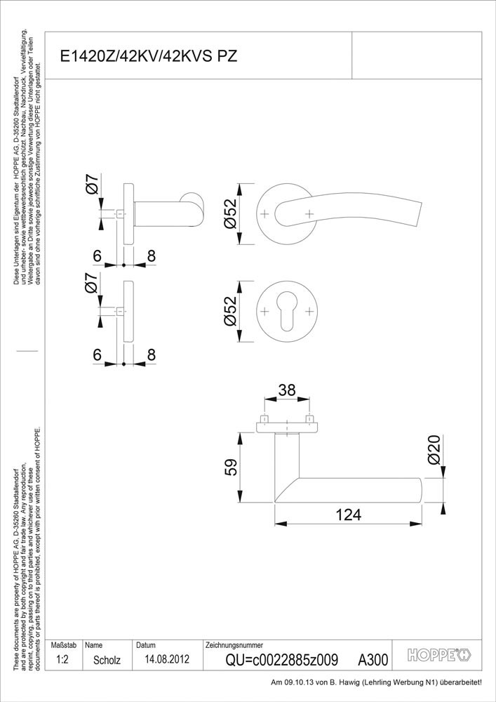 Rosetten-Garnitur mit Schlüsselrosetten · geprüft nach DIN EN 1906: 37-0140A (Gebrauchs-Kategorie Klasse 3), Objekt-Garnitur · Lagerung: Türgriffe lose, Rückholfedern rechts/links verwendbar , wartungsfreie Gleitlager · mit Schnellstift-Verbindung bei D/D mit HOPPE-Vollstift (Loch-/Lochteil), bei K/D mit HOPPE-FDW-Vollstift (Lochteil)· Unterkonstruktion: Kunststoff, Stütznocken · Befestigung: verdeckt, durchgehend, wechselseitig, Mehrzweckschrauben