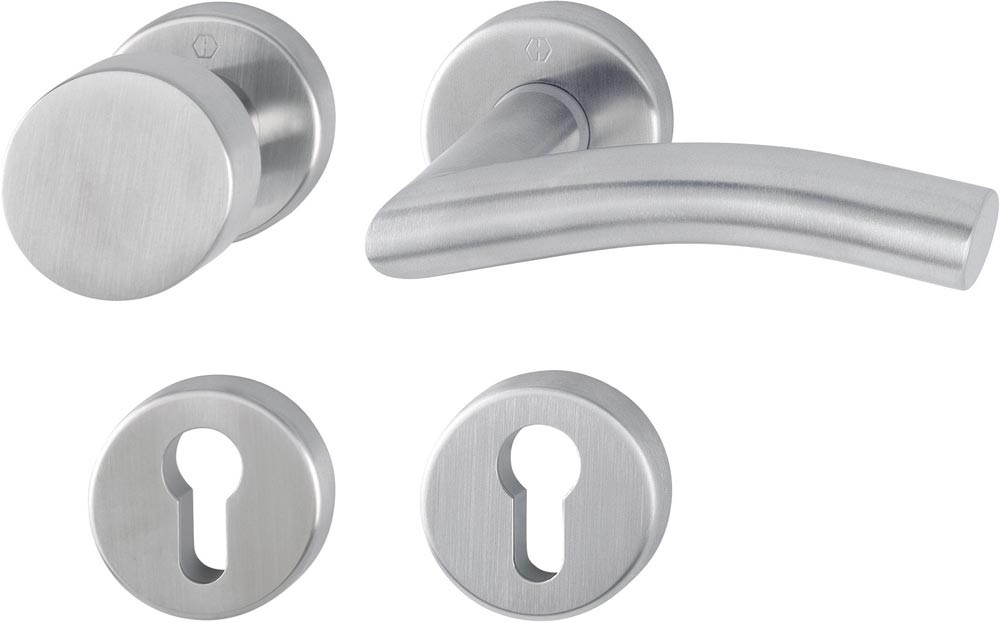 Rosettengarnitur Antwerpen E58/42KV/42KVS/1420Z Edelstahl F69 rund PZ DIN rechts flach D/K E6428333