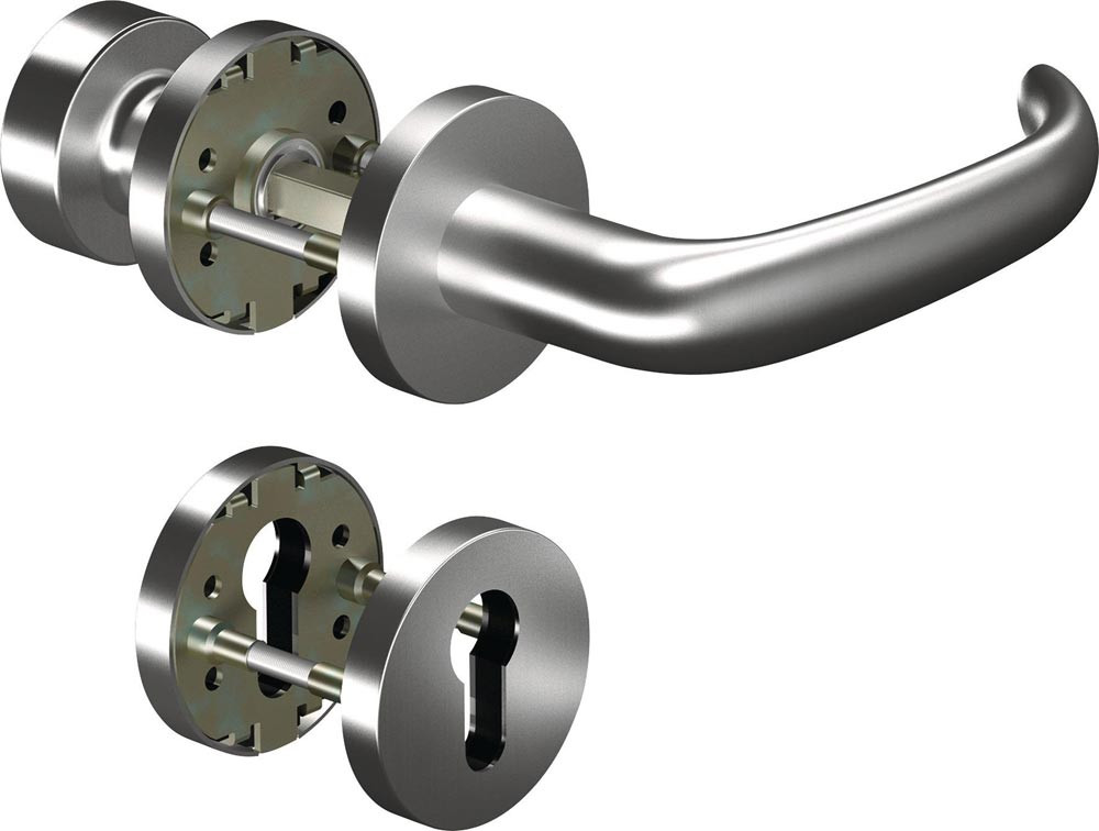 Rosettengarnitur CORE+8999 8mm / 6501 / 6612 PZ ER Edelstahl U-Form DIN links / rechts D/D E6482038