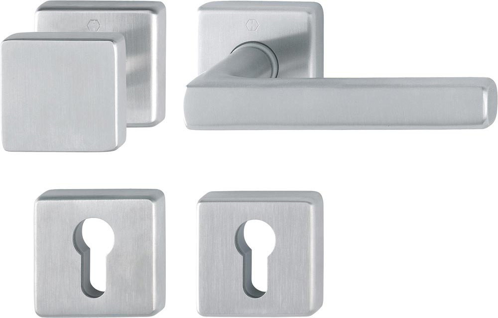 Rosettengarnitur Dallas E1643Z/52KV/52KVS Edelstahl F69 eckig OB DIN links / rechts D/D E6427529