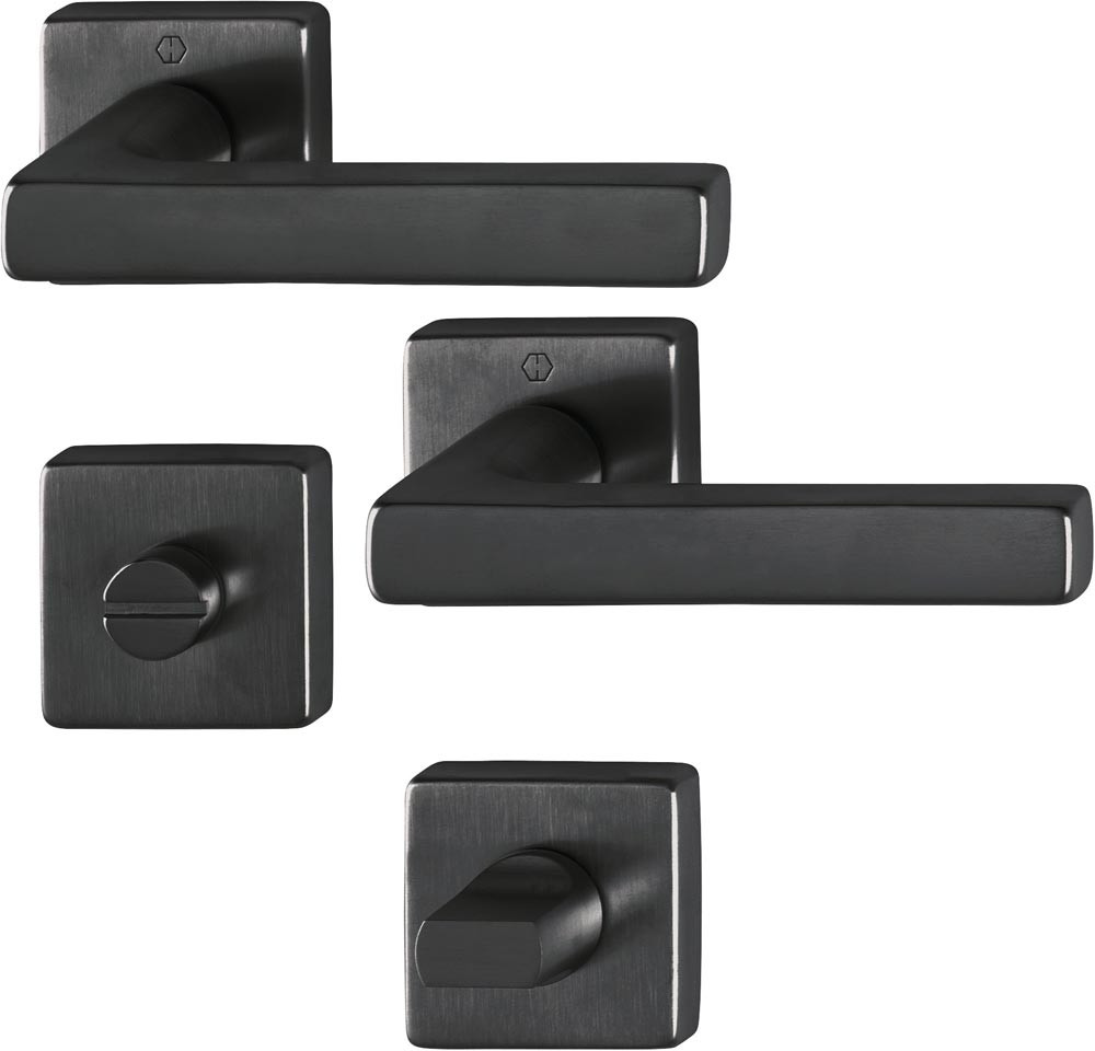 Messing-Rosetten-Türgriff-Garnitur mit Schlüsselrosetten für Innentüren · geprüft nach DIN EN 1906: 37-0140A (Gebrauchskategorie 3) · Lagerung: Türgriffe lose · Rückholfedern rechts/links verwendbar · wartungsfreie Gleitlager · Verbindung: HOPPE-Schnellstift mit HOPPE-Vollstift (Loch-/Lochteil) · Unterkonstruktion: Kunststoff, Stütznocken · Befestigung: verdeckt, durchgehend, wechselseitig, Mehrzweckschrauben