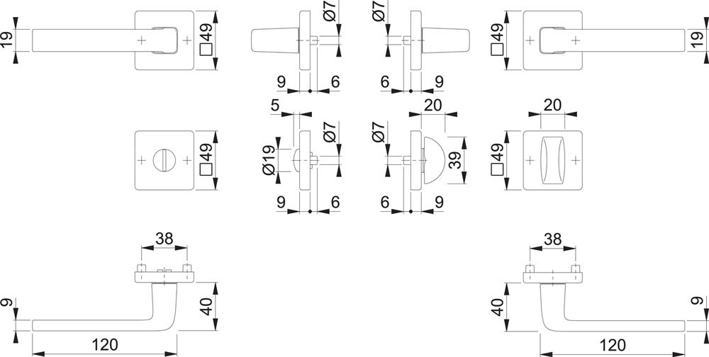 Lagerung: Türgriffe fest/drehbar, Rückholfedern, wartungsfreie Gleitlager