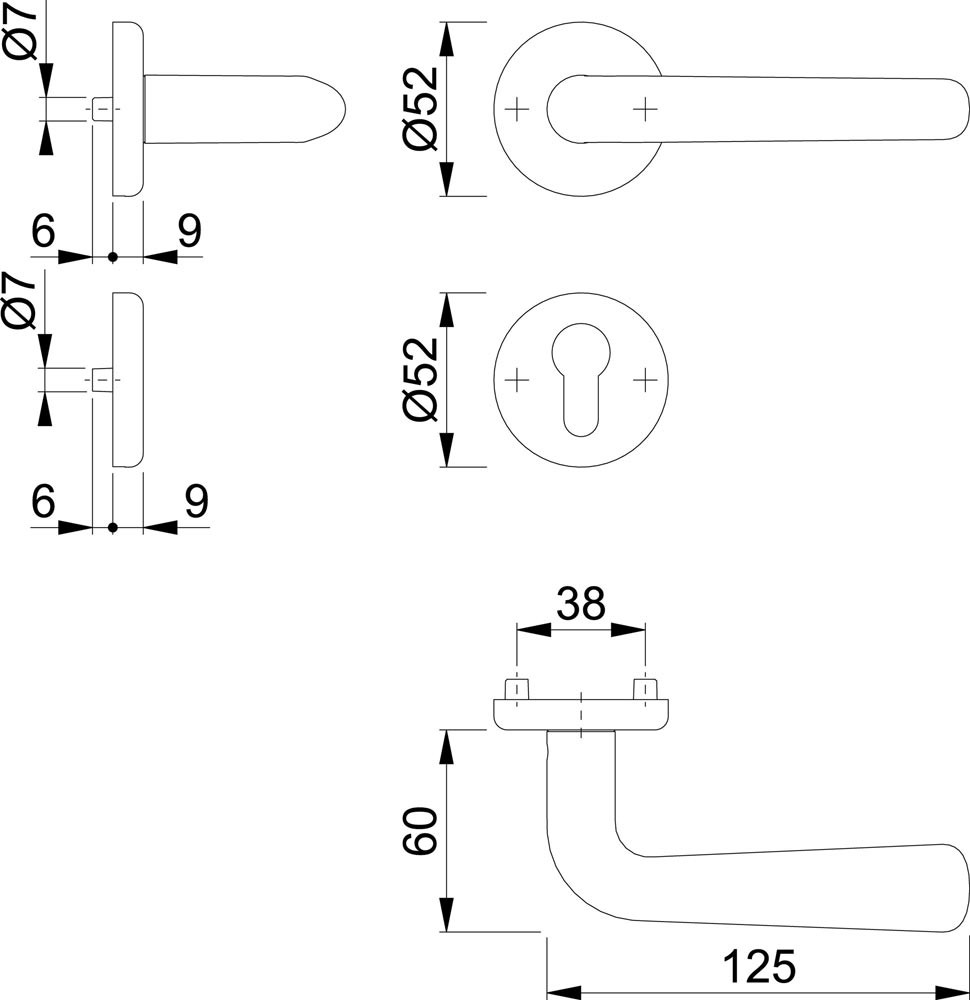 für Zimmertüren · verdeckte, durchgehende Verschraubung mit selbstschneidenden Gewindeschrauben · Kunststoff-Unterkonstruktion mit Stütznocken · mit Hochhaltefeder · Türgriff mit Profilstift-Verbindung · Vierkant 8 mm · für Türstärke 37 - 42 mm · Anschlagrichtung DIN links / rechts