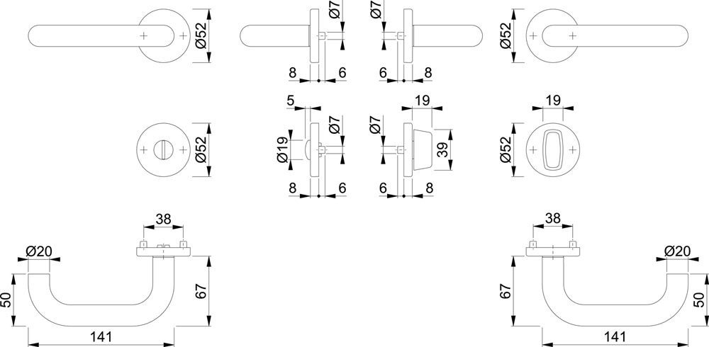 Innentür-Rosetten-Garnitur geprüft nach DIN EN 1906 (Gebrauchs-Kategorie Klasse 3) · Türgriffe mit Schnellstift-Verbindung (mit 8 mm Vollstift) für Türstärke 37-42 mm · Rosetten mit Kunststoff-Unterkonstruktion, Rückholfeder und Stütznocken · verdeckte, durchgehende Verschraubung mit selbstschneidenden Gewindeschrauben · Anschlagrichtung DIN links / rechts