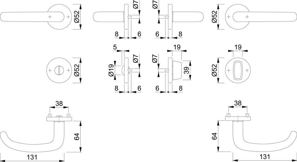 Innentür-Rosetten-Garnitur nach DIN EN 1906 (Gebrauchs-Kategorie Klasse 3) · Türgriffe mit Schnellstift-Verbindung (mit 8 mm Vollstift) für Türstärke 37 - 42 mm · Rosette mit Kunststoff-Unterkonstruktion, Rückholfeder und Stütznocken · Befestigung verdeckt, durchgehend · wechselseitig inkl. Mehrzweckschrauben · Anschlagrichtung DIN links / rechts