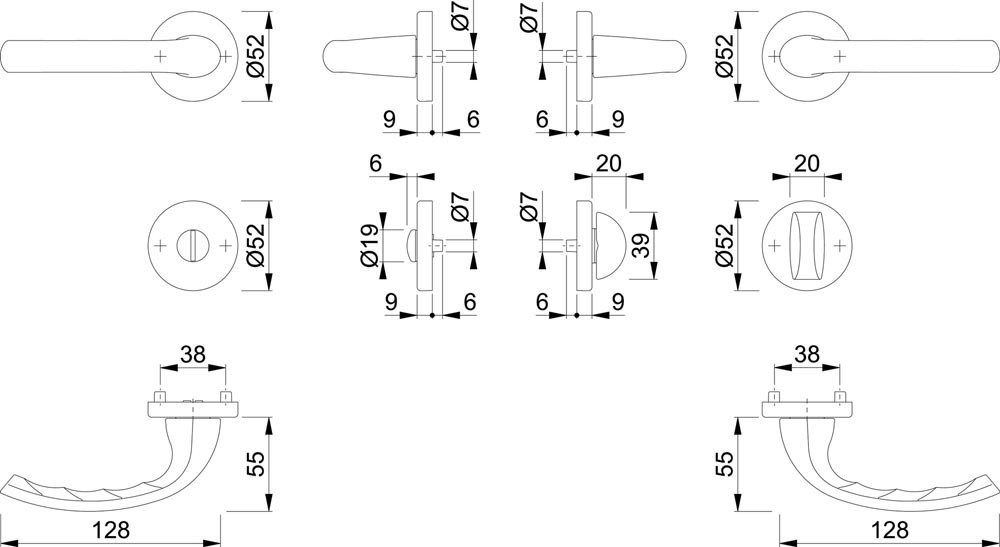 Rosettengarnitur Tky 1710 / 42KV / 42KVS Aluminium F1 rund OB DIN links / rechts D/D E6428190