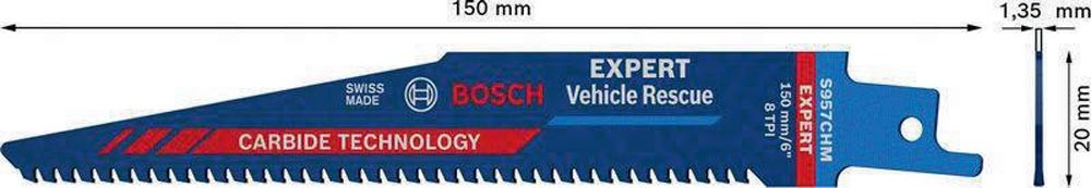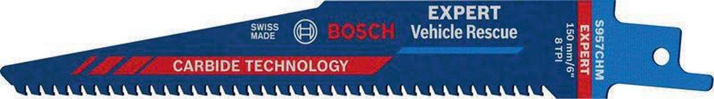 zum Schneiden von modernem Automobilstahl · ein spezielles Spitzendesign für Tauchschnitte in Blech vorzunehmen · für Rettungsarbeiten , wie dem Schneiden eines Seiten- oder Dachzugangs zu den Passagieren · die kurze S957CHM-Version ist ideal zum Entfernen von Windschutzscheiben, während die längere S1157CHM-Version für das Schneiden von A-, B- und C-Säulen aus verstärktem Stahl ausgelegt ist · passend für alle S-Schaft-Säbelsägen
