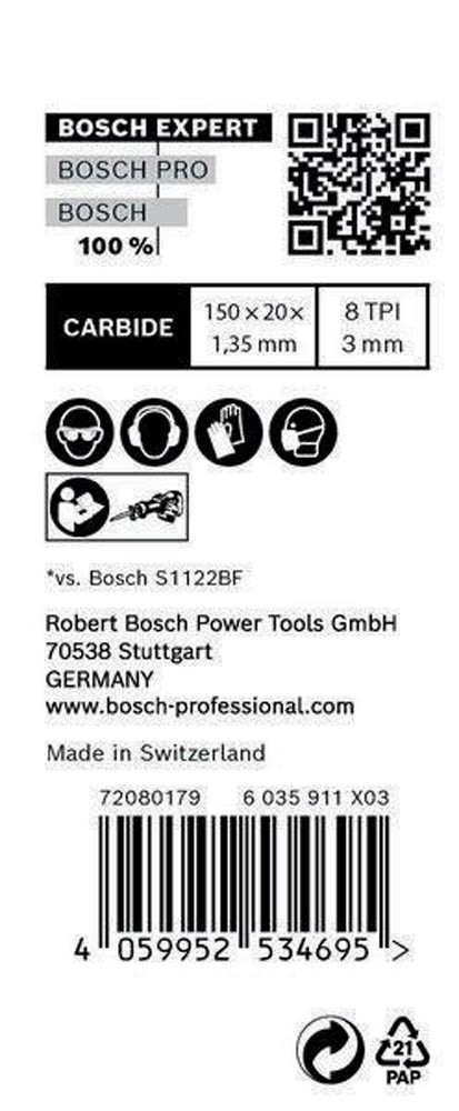 Säbelsägeblatt Expert Automotive Steel Länge 150 mm Breite 20 mm Zahnteilung TPI 8 3 mm S-Schaft 10 Stück / Karte E6423433