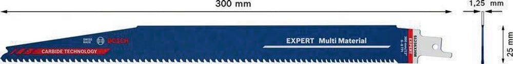 Säbelsägeblatt Expert Multimaterial Länge 300 mm Breite 25 mm Zahnteilung TPI 6-8 3-4 mm S-Schaft 2608900394 1 Stück / Karte