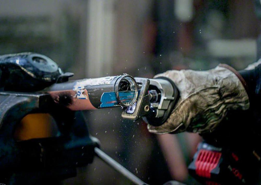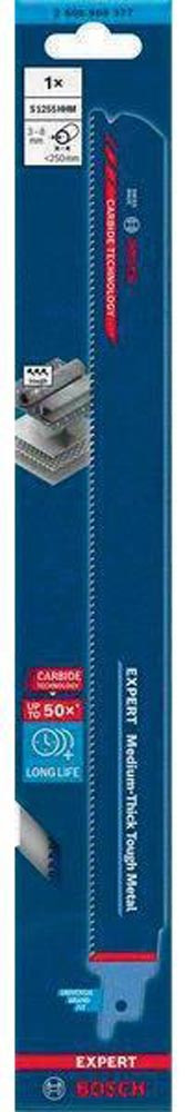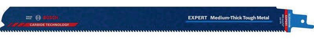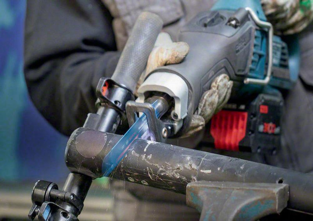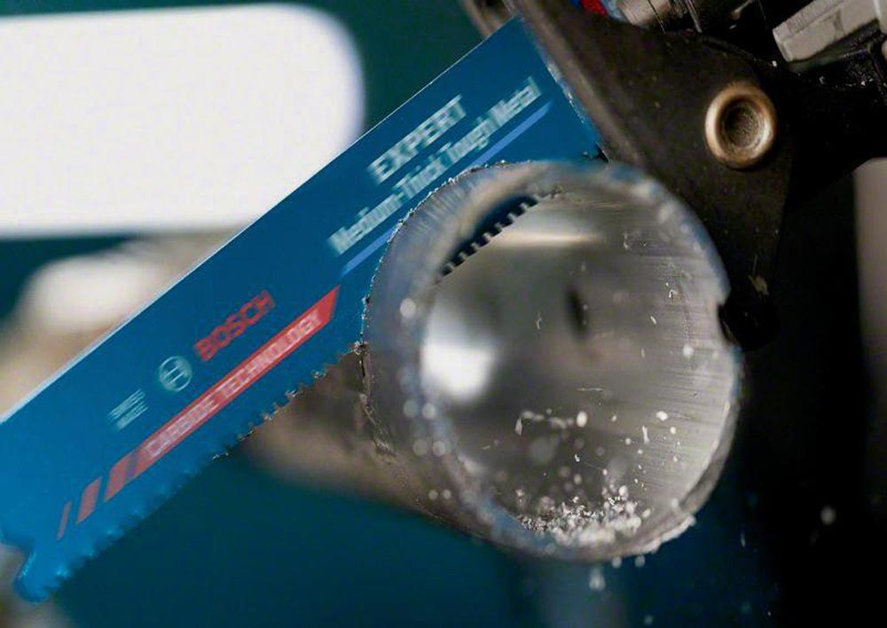 Bosch Carbide-Technologie für langlebiges Schneiden von Metall mittlerer Dicke · feinere Zahnteilung für dünnere Bleche und Rohre mittlerer Stärke · passend für alle S-Schaft-Säbelsägen
