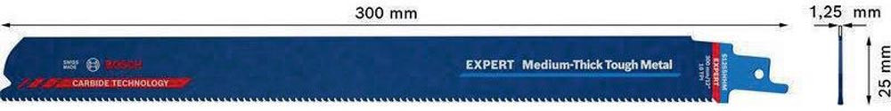 Säbelsägeblatt Med. Thick Metal Länge 300 mm Breite 25 mm Zahnteilung TPI 10 2,5 mm S-Schaft 1 Stück / Karte 2608900377 E6441103