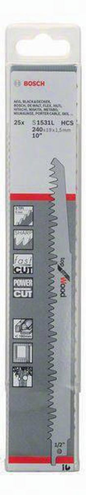 Säbelsägeblatt S 1531 L Länge 240 mm Breite 19 mm Zahnteilung TPI 5 5 mm geschränkt, geschliffen 25 Stück / Karte E417700