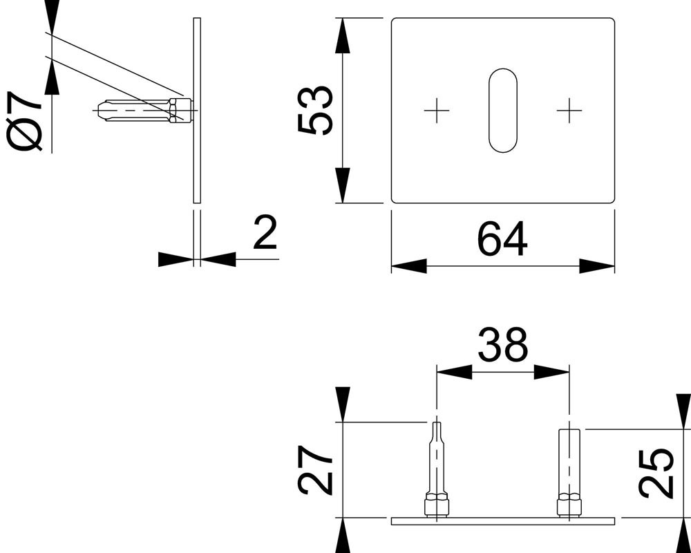 Schlüsselrosetten-Paar E847NS Edelstahl F69 Schildstärke 2 mm OB rechteckig E6426436