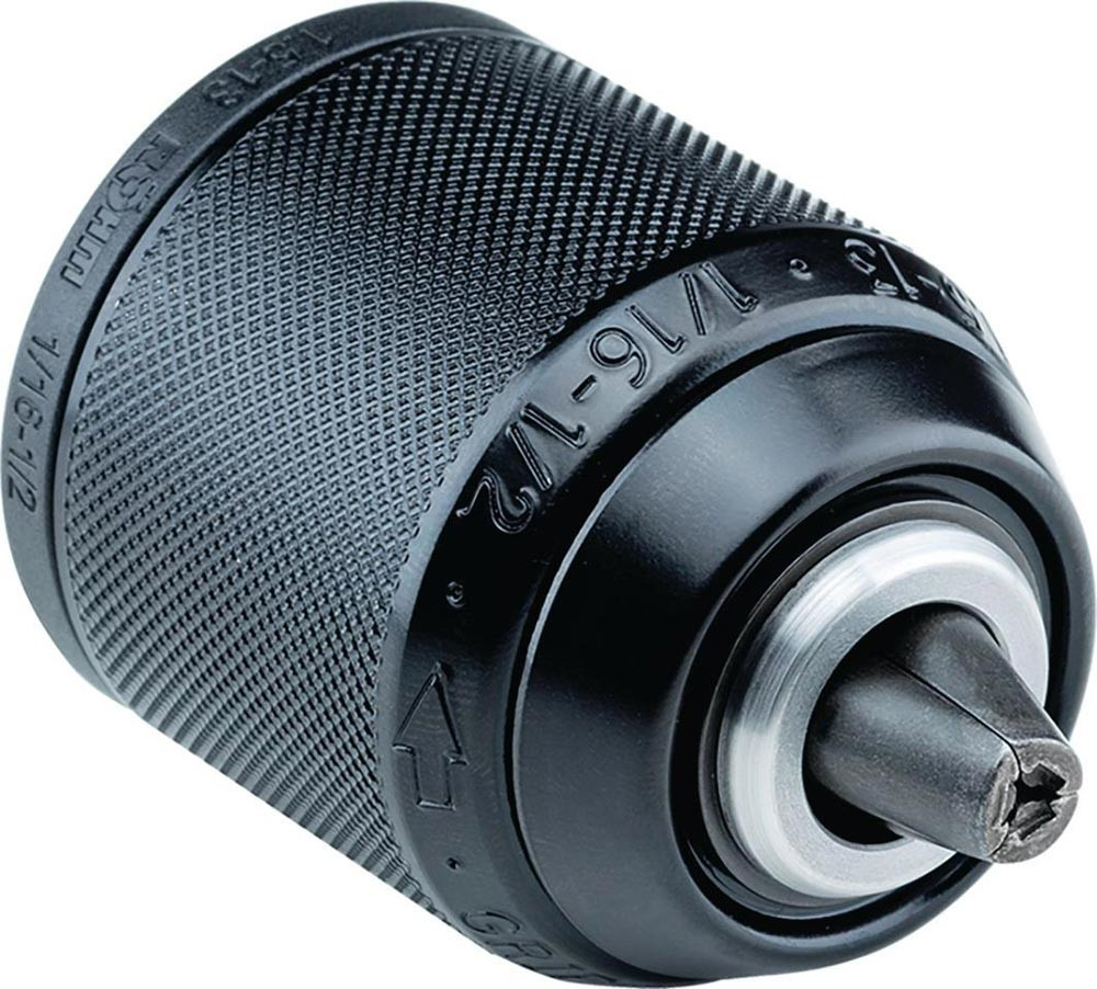 im Metallgehäuse · mit Radialverriegelung · für Akku-Bohrmaschinen und Schrauber · Netz-Bohrmaschine mit selbsttätiger Nachstellung · schlagbohrfest · mit Staubschutz · durchbohrt · Spannfasen der Backen aus Hartmetall · sehr kompakte Bauform für reduzierte Kopflastigkeit der gesamten Maschine, durch die Baulänge von nur 51 mm (bei geöffneten Spannbacken) · für Rechts- und Linkslauf