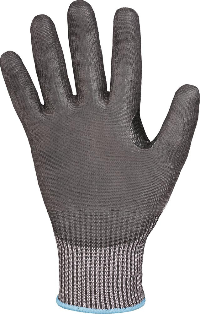 nach EN 388, EN 407 · Kat. II · Material: 65% Schnittschutzfaser, 22% Polyamid (Nylon), 8% Elasthan, 5% Carbon, grau · flexible und dünne PU-Beschichtung , schwarz, Feinstrick (13gg), nahtlos · atmungsaktiv · Schnittschutzlevel F · Touch Screen Funktion zum Bedienen von Smartphones, Tablets und Bildschirmen · höchster Tragekomfort und optimale Fingerfertigkeit · exzellente, mechanische Beständigkeiten