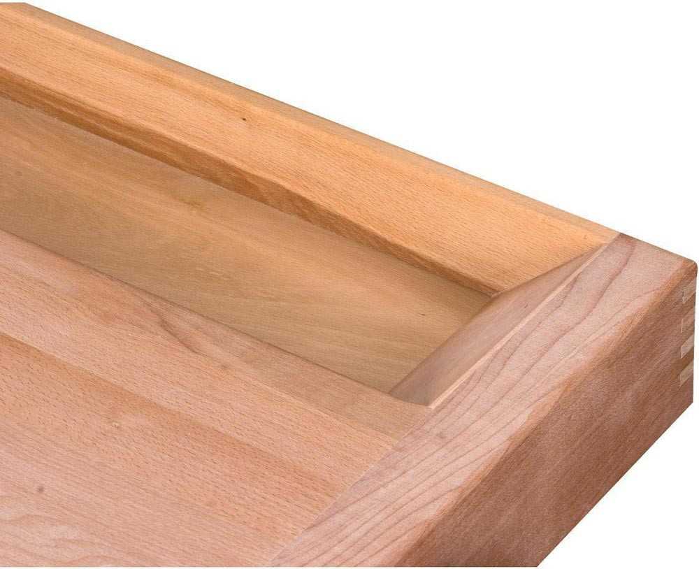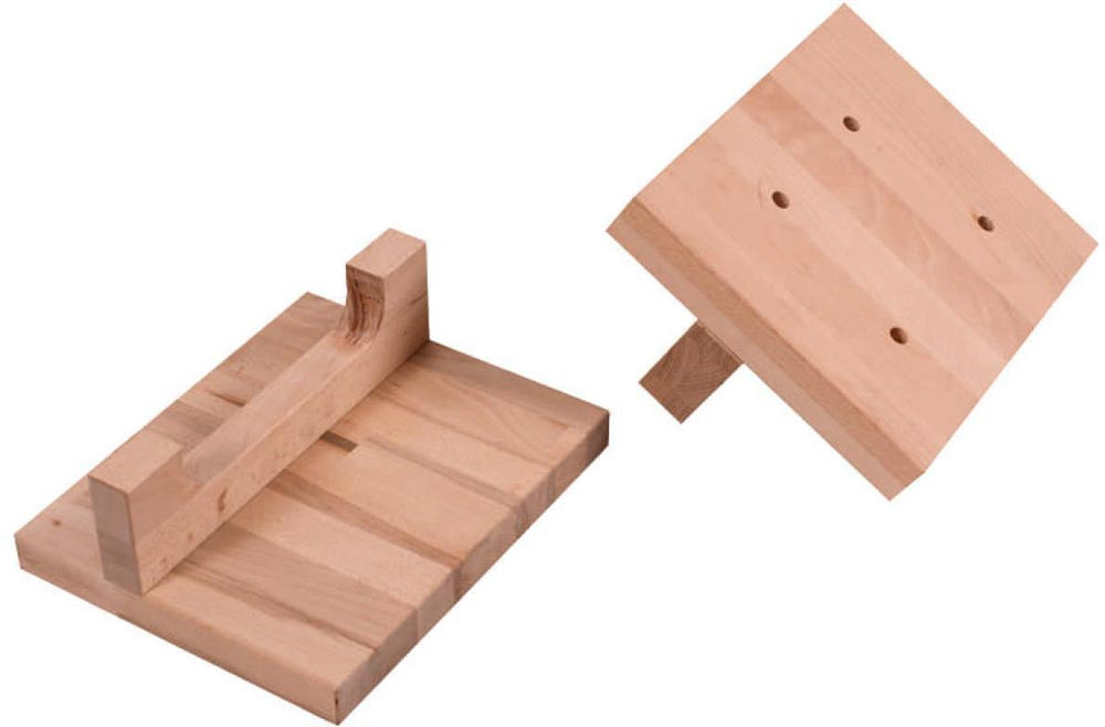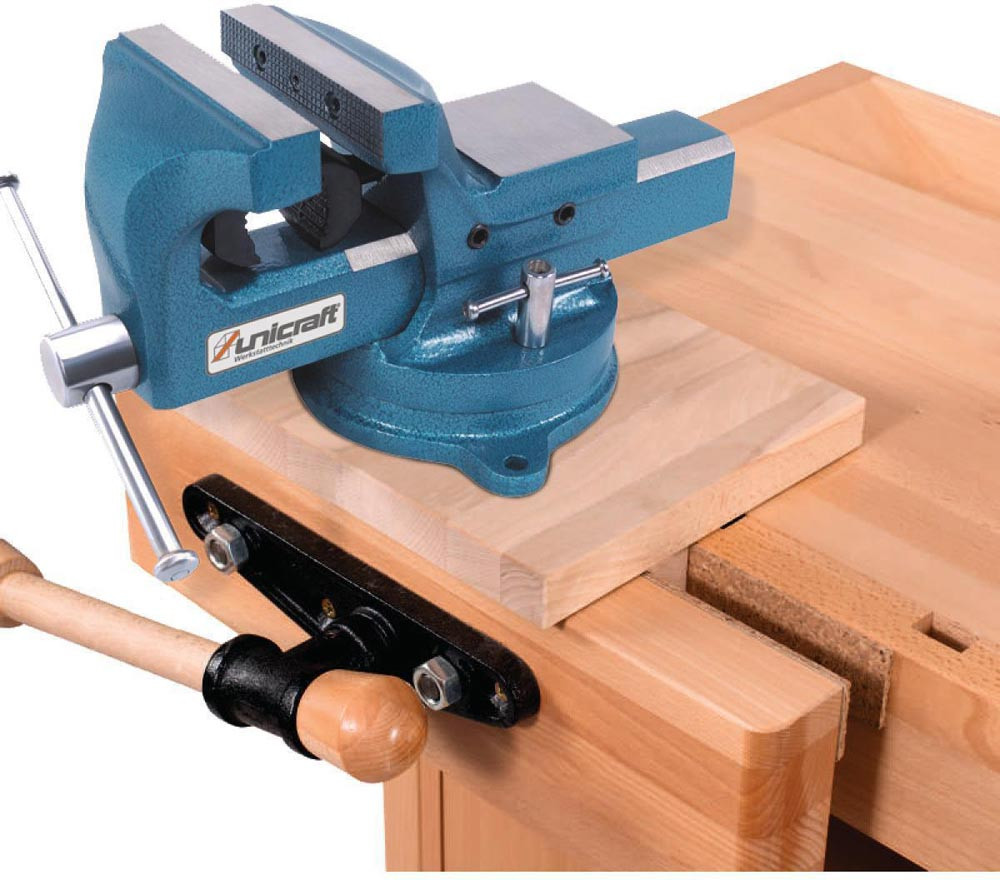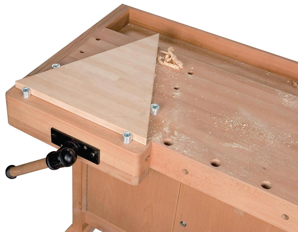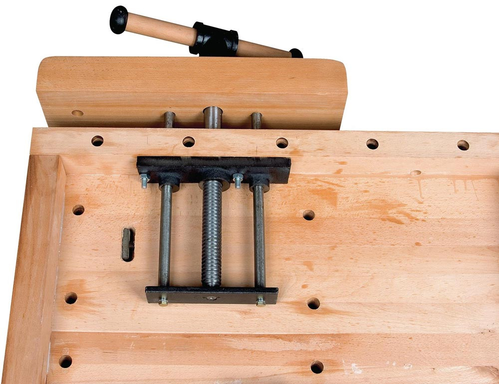 Profi-Ausführung · präzise und sorgfältige Verarbeitung · komplett aus gedämpfter, massiver Rotbuche · alle wichtigen Kanten gerundet · Oberflächen umweltfreundlich geölt · serienmäßig mit Werkzeuglade · 2 Zylinderstäbe der Spannzangen präzise und stabil in einem Gussteil geführt · mit leichtgängiger Trapezgewindespindel · mit französischer Vorderzange und deutscher Hinterzange mit Linearführung · Fingerverzinkung in Hinterzange und Beiladerücken