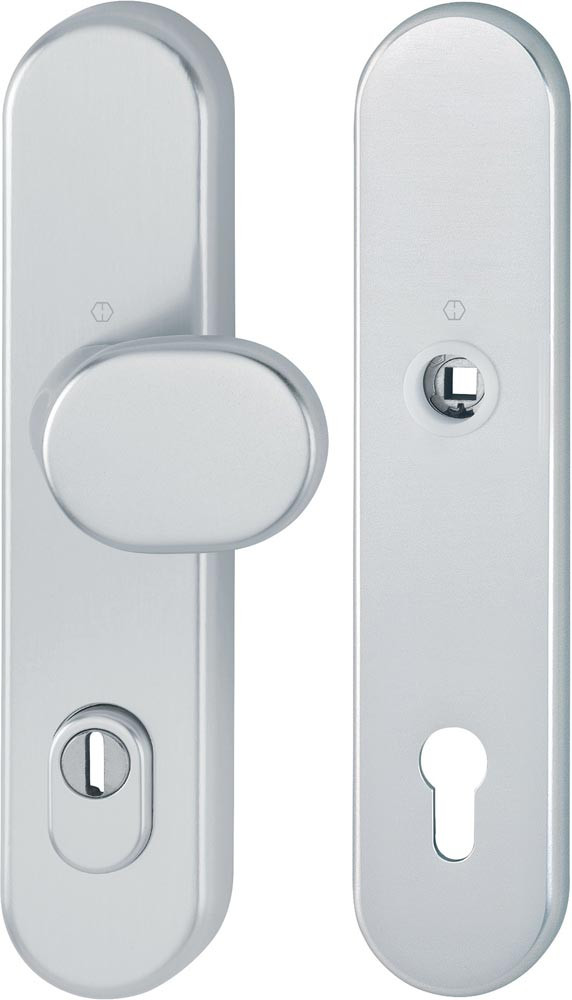 Die Schutz-Langschild-Wechsel-Garnitur ist ausschließlich mit HOPPE-Schnellstift-Türgriff-Lochteilen kombinierbar und entspricht nur so den Anforderungen der Schutzklasse ES1 (SK2).