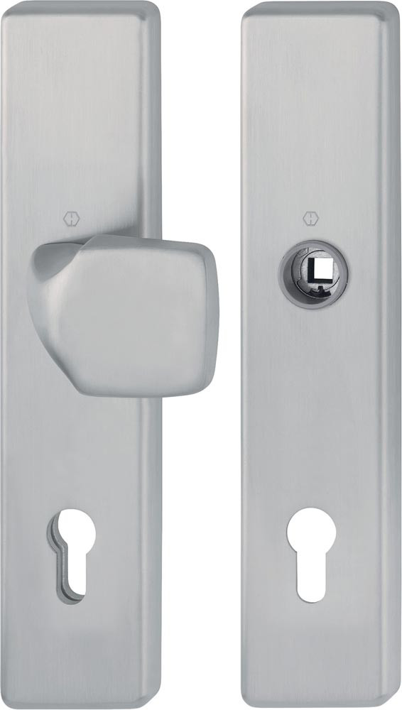 Die Schutz-Langschild-Wechsel-Garnitur ist ausschließlich mit HOPPE-Schnellstift-Türgriff-Lochteilen kombinierbar und entspricht nur so den Anforderungen der Schutzklasse ES1 (SK2).