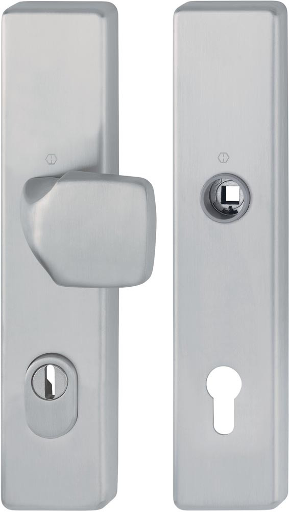 Die Schutz-Langschild-Wechsel-Garnitur ist ausschließlich mit HOPPE-Schnellstift-Türgriff-Lochteilen kombinierbar und entspricht nur so den Anforderungen der Schutzklasse ES1 (SK2).