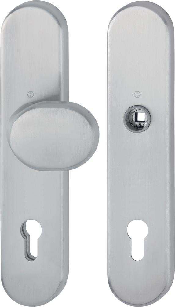 Die Schutz-Langschild-Wechsel-Garnitur ist ausschließlich mit HOPPE-Schnellstift-Türgriff-Lochteilen kombinierbar und entspricht nur so den Anforderungen der Schutzklasse ES1 (SK2).