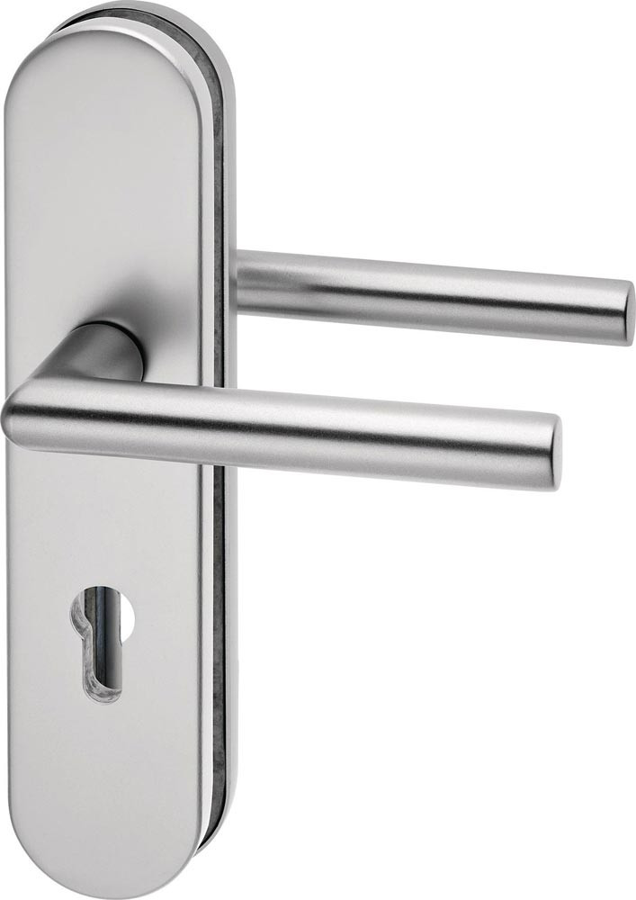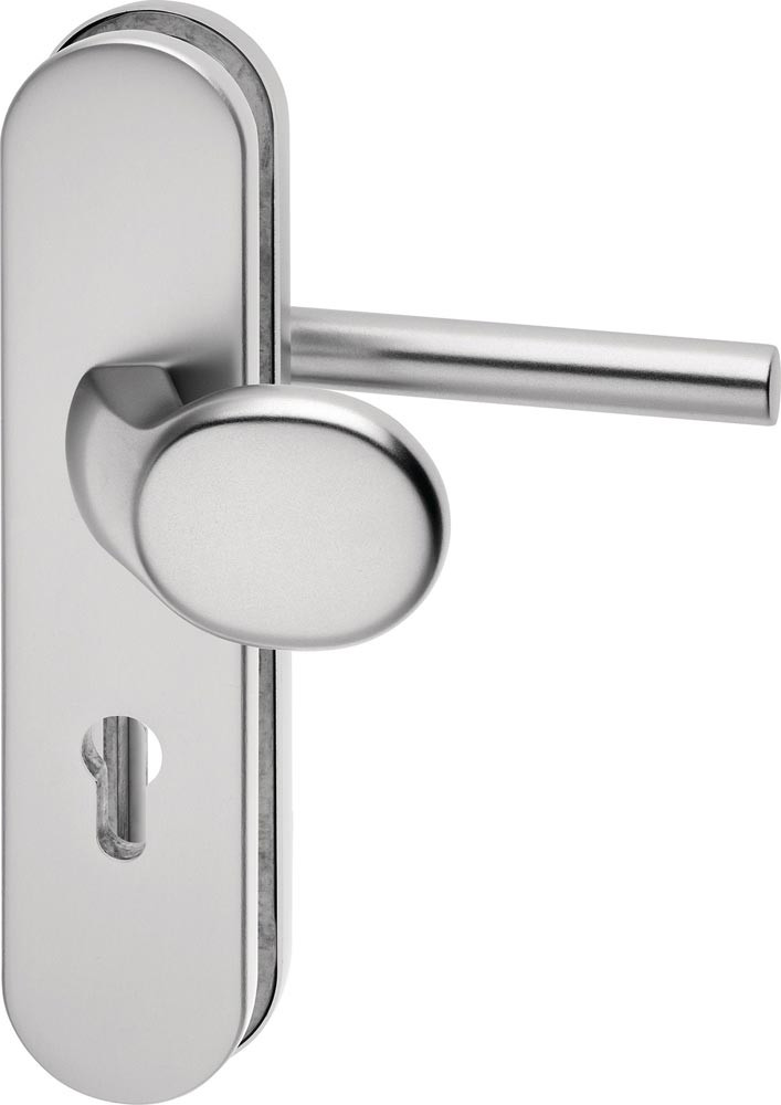 Grundkonstruktion: Druckguss mit 2 mm Teilstahleinlage im Außenschild, oberflächengehärtet · Stärke Innenschild = 8 mm · Drücker-Lagerung: lose · Drückertyp und -stärke: 108 mit Ø 22 mm · Knopfausführung bei Wechselgarnitur: Modell …/0272 und …/0292 = K2 (gekröpft), bzw. Modell …/0772 und …/0792 = K7 (gerade) · Stütznocken: M6, Ø 10 mm anbohrgeschützt · Verschraubung: 3-fach M6, verdeckt · Anbohrschutz beim Außenschild · Wechselgarnituren mit Spezialrollenwechselstift mit M12-Gewinde · DIN links / rechts · ohne Zylinderabdeckung · Widerstandsklasse ES1