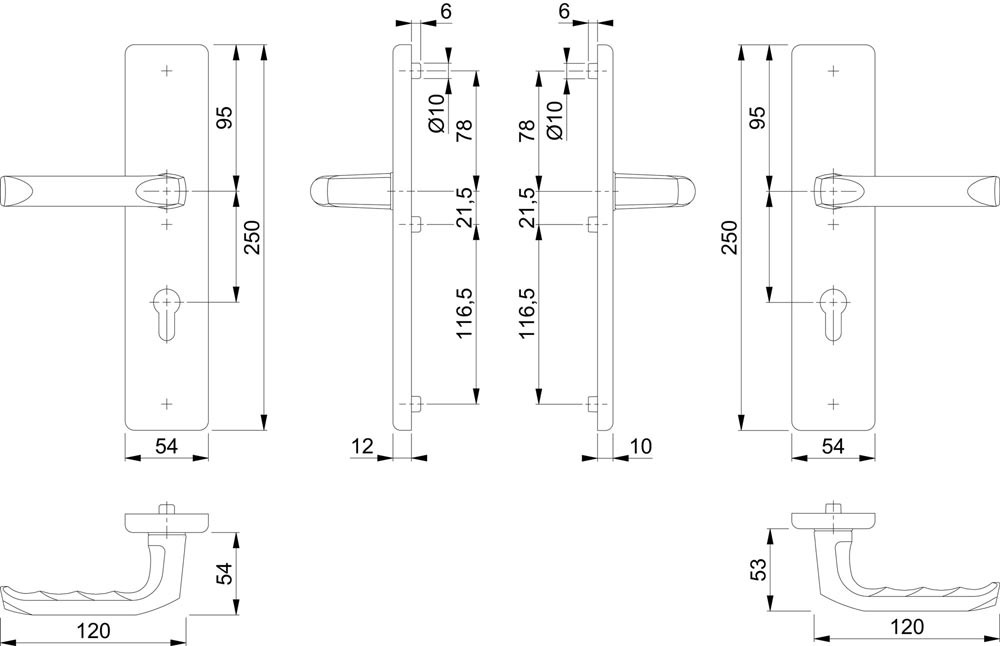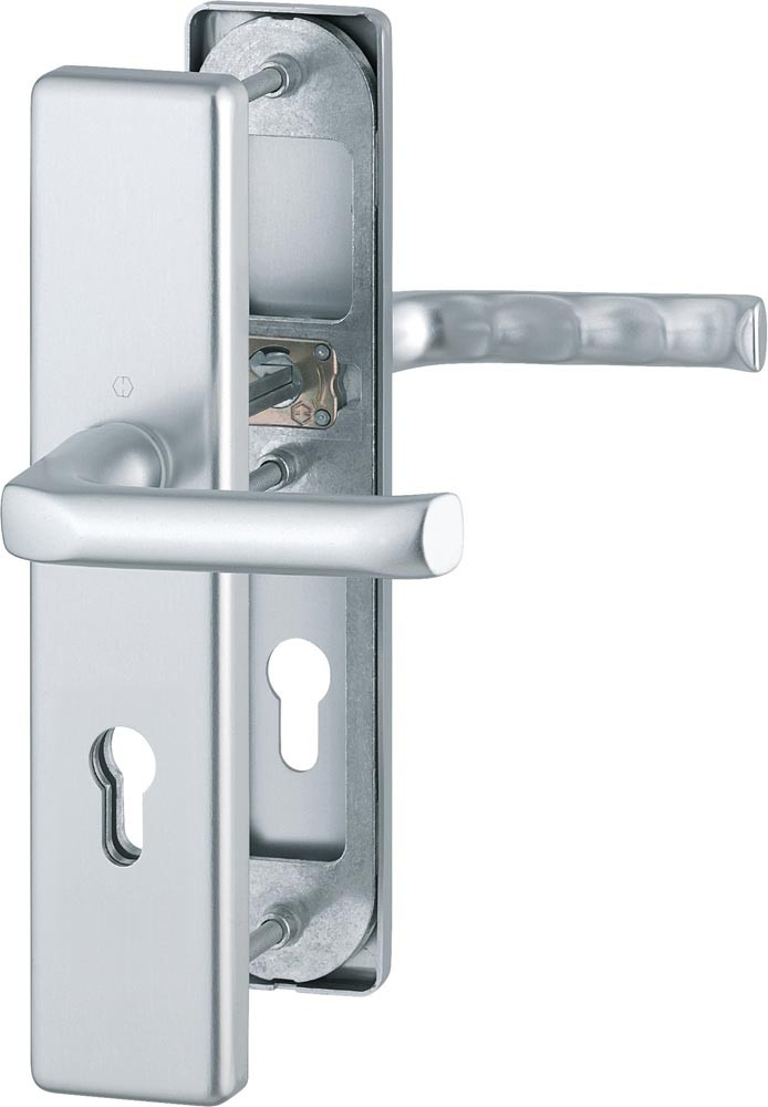 für Abschlusstüren · einbruchhemmend nach DIN 18257 · Knopfschild-Randhöhe: 12 mm · Stahlunterkonstruktion im Innen- und Außenschild · mit Rückholfeder-Paket (bei 8 mm Vierkant / NICHT bei 10 mm) · FDW-Profilstift-Verbindung · DIN links / rechts verwendbar · hochfeste, verdeckte Verschraubung · Lochung PZ · einschließlich Befestigungsmaterial · Widerstandsklasse ES 1