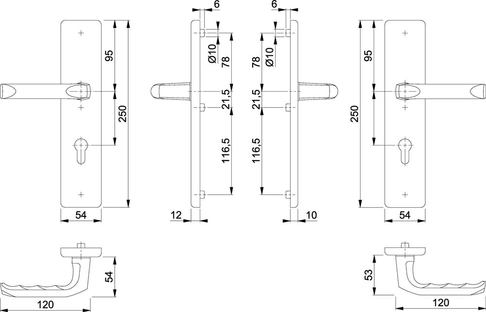 für Abschlusstüren · einbruchhemmend nach DIN 18257 · Knopfschild-Randhöhe: 12 mm · Stahlunterkonstruktion im Innen- und Außenschild · mit Rückholfeder-Paket (bei 8 mm Vierkant / NICHT bei 10 mm) · FDW-Profilstift-Verbindung · DIN links / rechts verwendbar · hochfeste, verdeckte Verschraubung · Lochung PZ · einschließlich Befestigungsmaterial · Widerstandsklasse ES 1