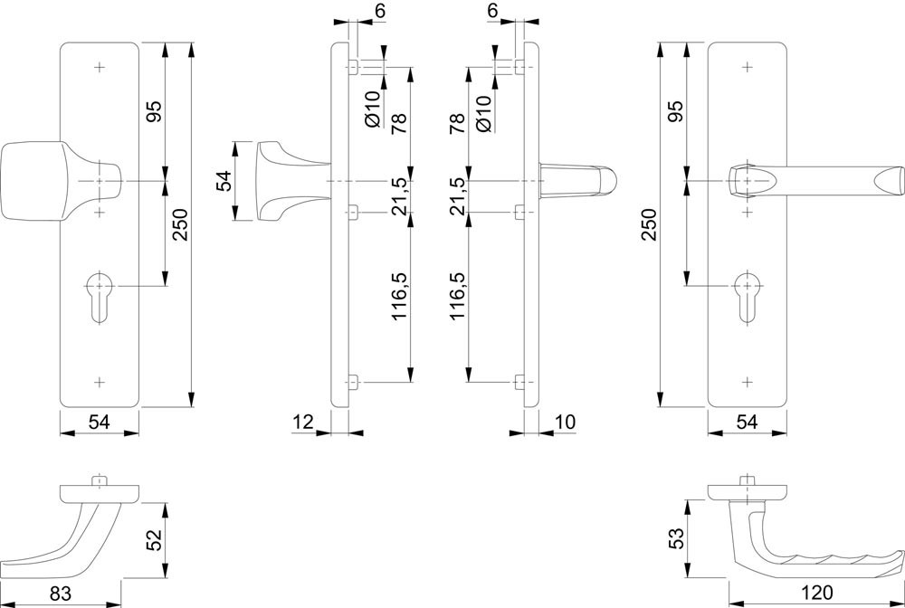 für Abschlusstüren · einbruchhemmend nach DIN 18257 · Knopfschild-Randhöhe: 12 mm · mit Rückholfeder-Paket (bei 8 mm Vierkant / NICHT bei 10 mm) · Wechselgarnitur mit gekröpftem Knopf lt. Abb. · FDW-Profilstift-Verbindung · DIN links / rechts verwendbar · Befestigung: verdeckt, durchgehend, Gewindeschrauben M6 · Lochung PZ · einschließlich Befestigungsmaterial · Widerstandsklasse ES 1 · Unterkonstruktion: außen Stahl, innen Aluminium, Stütznocken