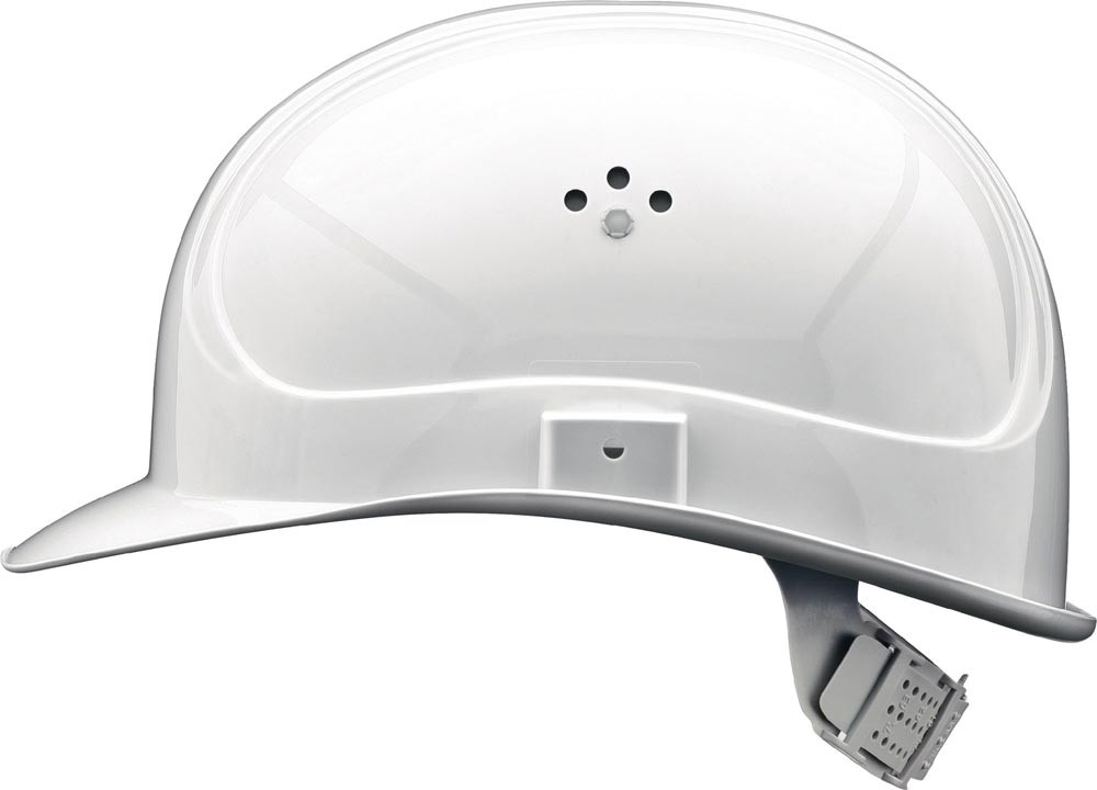 nach EN 397 · Zusatzprüfung Kälte (-30 °C) · aus Polyethylen · universelle Passform mit im Nacken heruntergezogener Helmschale · große Stirnfläche (bedruckbarer Bereich 6 x 4 cm) · seitliche Slots für Gehörschützer, 30 mm · Regenrinne · 4 Pkt.-Gurtband-Innenausstattung mit Kinnriemenhalterung und umlaufendem Schweißband · Kopfumfang 51-64 cm · Gewicht Helmschale ca. 255 g