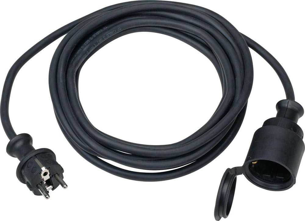Gummi-Verlängerung · Schutzkontaktstecker und Schutzkontaktkupplung mit Abdeckkappe · im Folienbeutel · IP44 · geprüft nach VDE 0620-1, VDE 0285-525-2-21