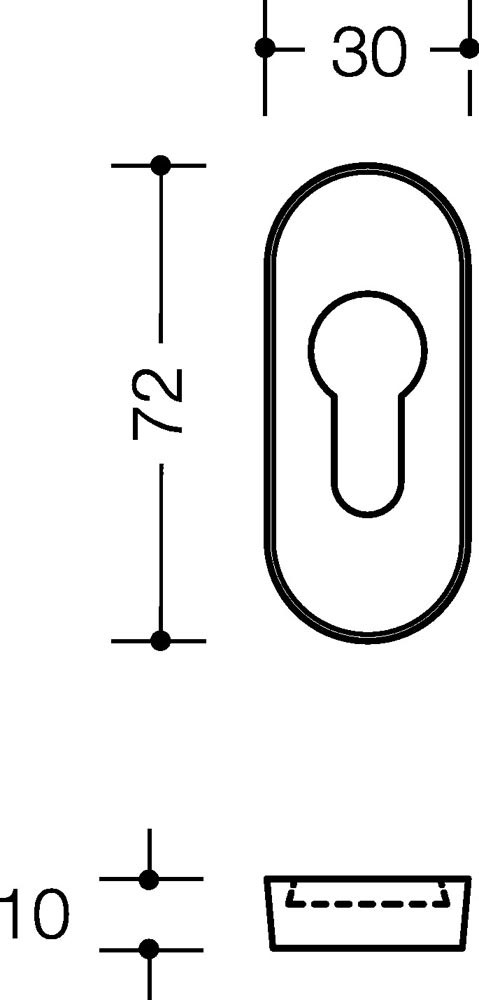 Außenrosette, massiv, oval 72 x 30 mm, 10 mm stark
