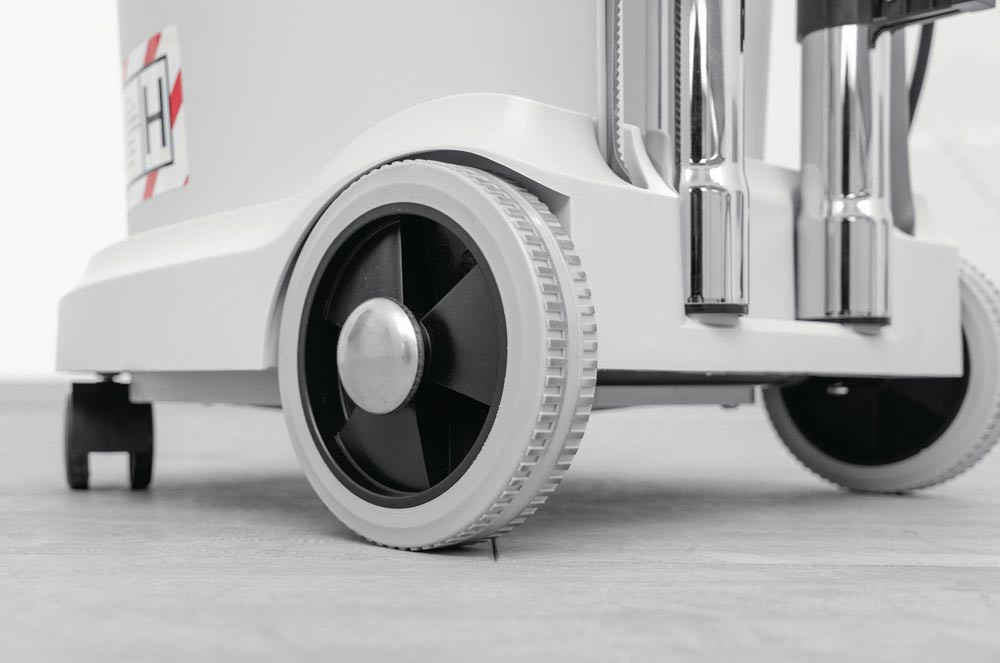 Filterfläche 3500 cm² · Ablassschraube zum Entleeren von Flüssigkeiten · Zubehör-, Kabel und Schlauchaufbewahrung am Gerät · PressClean manuelle Filterabreinigung · Volumenstrom-Überwachung mit optischem und akustischem Warnsignal · Stand-by LED · Sauger antistatisch vorbereitet · Gerätesteckdose mit Einschaltautomatik - stufenloser Drehzahlsteller · Staubklasse M