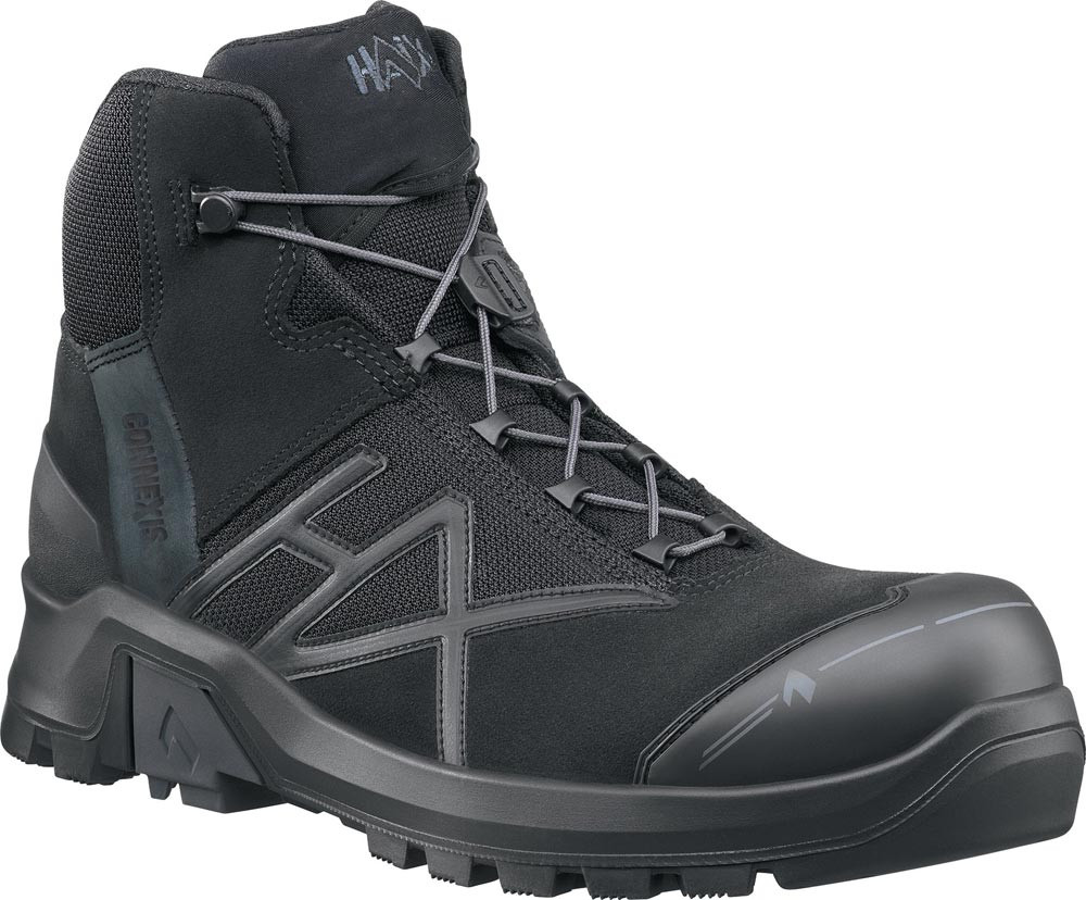 nach CE EN ISO 20345 · S3 HRO HI CI WR SRC · Obermaterial: Velourleder-Textil-Kombination · CONNEXIS® System: Faszienstimulation · atmungsaktiv und wasserdicht durch GORE-TEX® Extended Innenfutter · PU-Dämpfungskeil · ultraleichte Nano-Carbon Schutzkappe · flexible Durchtrittsicherheit · HAIX® Absorption: entlastende Dämpfung · Vario Wide Fit System zum Regulieren der Weite · HAIX® Climate System