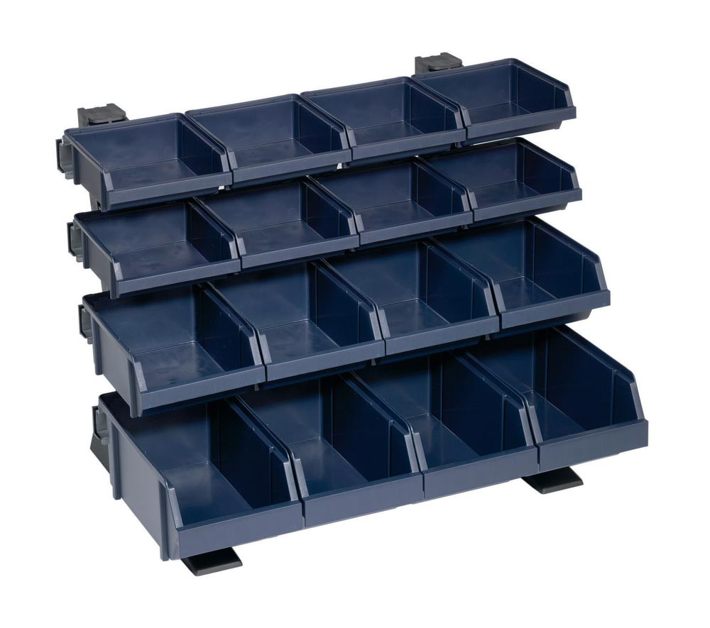 Sichtboxen-Tischständer Sichtboxen-Tischständer Mix B.500xT.360xH.388mm m.16 Boxen in 3Gr. dkl.-blau Ständer a.PS, Boxen a.PP