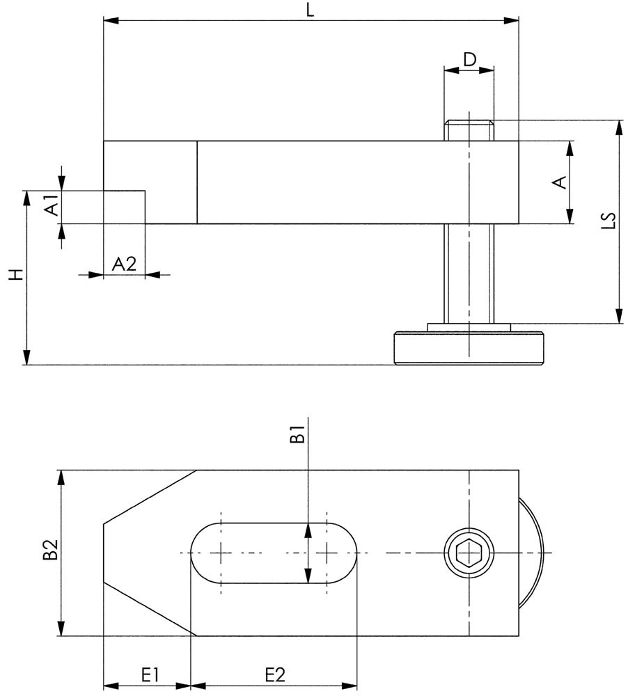 Maß H: Abhängig von Nutentiefe nach DIN 650, sowie Einschraublänge der Mutter. Die niedrigste Spannhöhe wird durch Umdrehen des Spanneisens erreicht. Spanneisen ohne Spannschraube sind in den Größen 12 und 14, 16 und 18 sowie 20 und 22 je eine Größe.