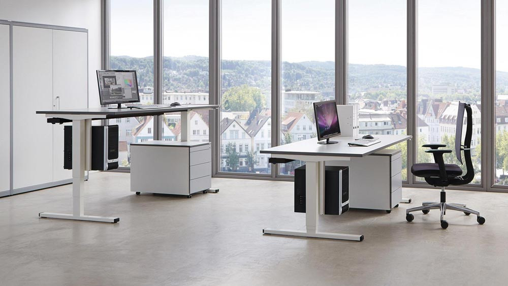 Steh-/Sitzarbeitsplatz levero H650-1250xB1600xT800mm signalweiß, RAL 9003/weiß elektrisch höhenverstellbar