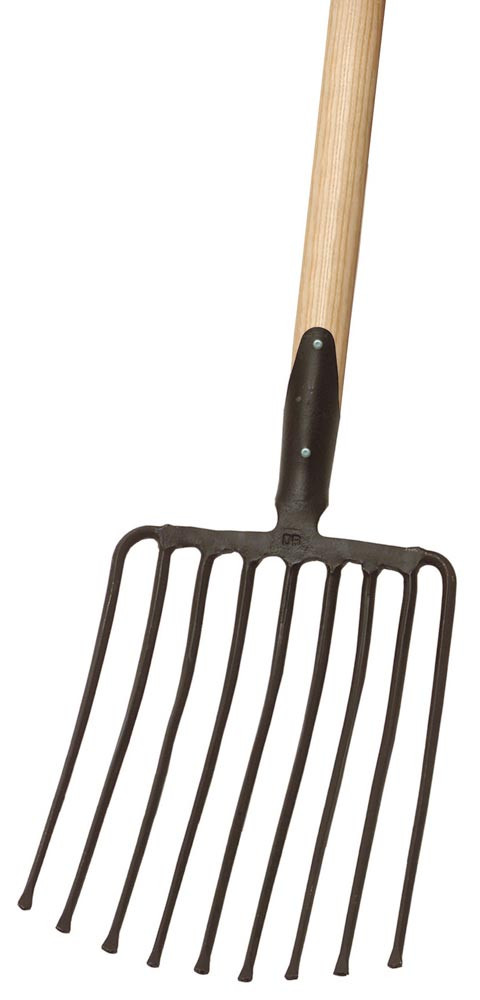 Steingabel 9 Zinken, 330 x 250 mm, schwarz, Eschen-Langstiel 130 cm