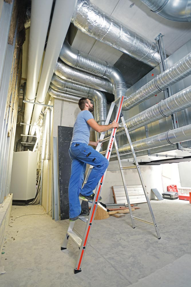 ∙ Mit Holm verschraubte Leiterfüße im Anstellwinkel mit großer Auflagefläche und hoher Standfestigkeit