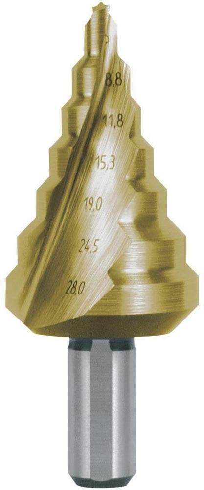 Stufenbohrer Bohrbereich 5-28 mm HSS TiN spiralgenutet Schneidenanzahl 2 Stufenanzahl 7