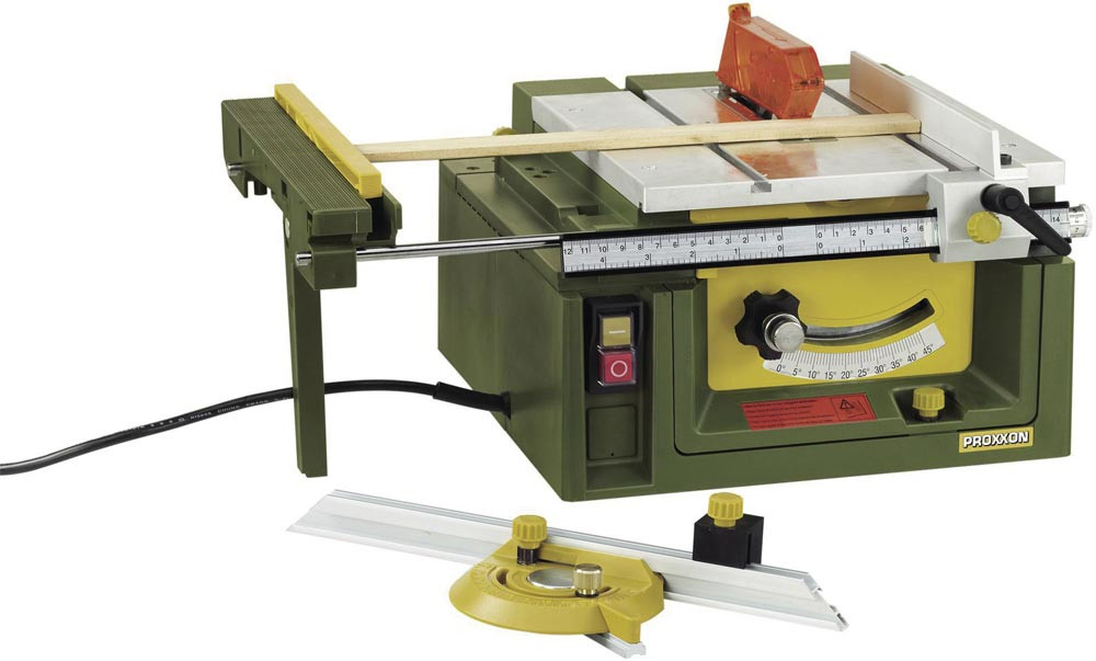 zum Trennen von Holz, NE-Metall, Kunststoff, Plexiglas, GFK-Platten, Schaumstoff und vielen anderen Materialien · ausziehbare Tischauflage · plangefräster Alu-Druckguss-Tisch mit zwei durchgehenden T-Nuten · Sägeblattschutz fährt beim Sägen automatisch hoch · Skala zum Justieren des Längsanschlages sowie Stellschraube zum Feinjustieren um 1/10 mm · DC-Spezialmotor mit kugelgelagerter Sägeblattwelle