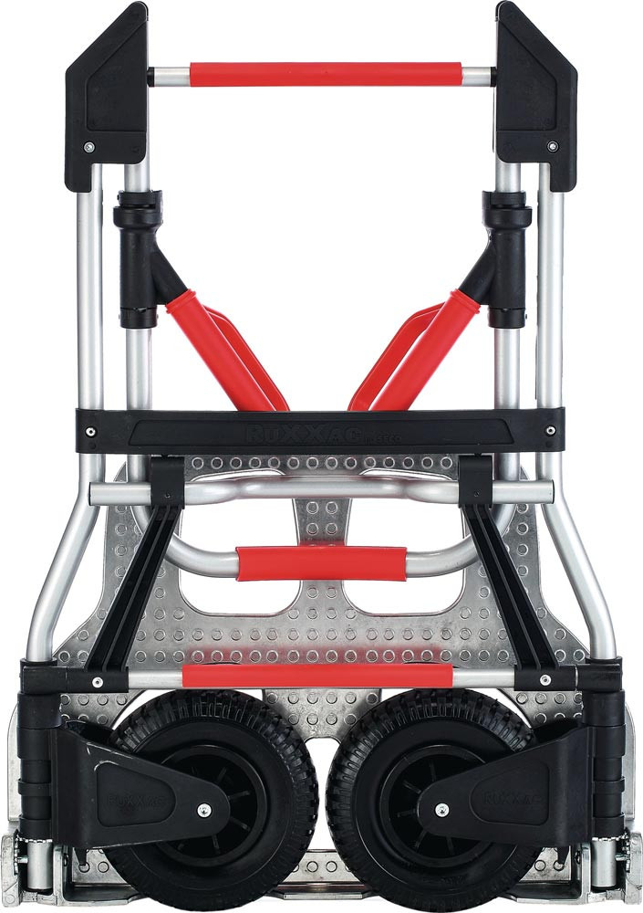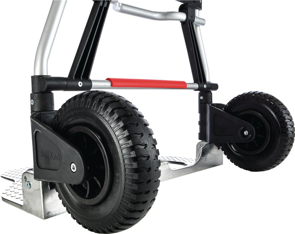 klappbar · robuster Rahmen aus Stahlrohr, kunststoffbeschichtet · Schaufel aus Aluminium · glasfaserverstärkte Kunststoffe · stabile große Schaufel für die Aufnahme von großvolumigem, sperrigem Transportgut · pannensichere PU-Bereifung, Naben mit Kugellager · Rollfunktion auch im geklappten Zustand