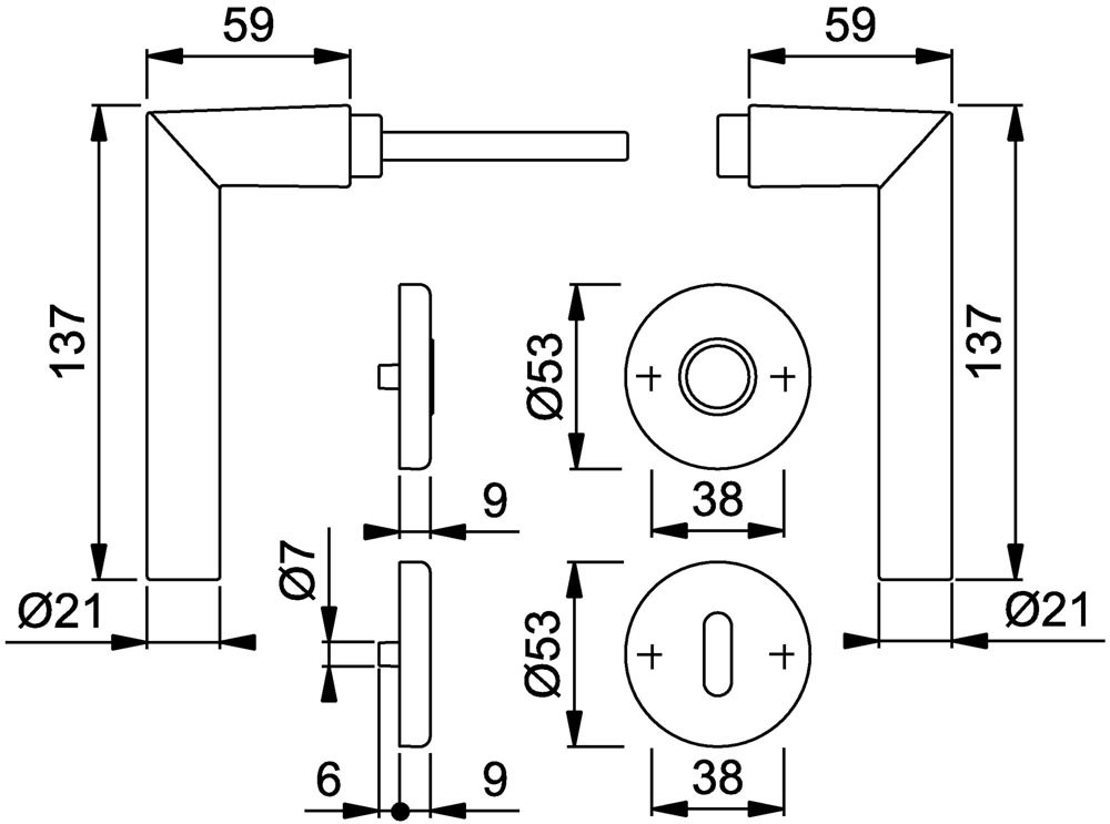 mit Schnellstift-Verbindung · Vierkant 8 mm · Drückerpaare vorgerichtet für Türstärken von 37 - 42 mm einsetzbar · auch für Rosetten mit Rückholfeder-Paket einsetzbar · DIN links / rechts
