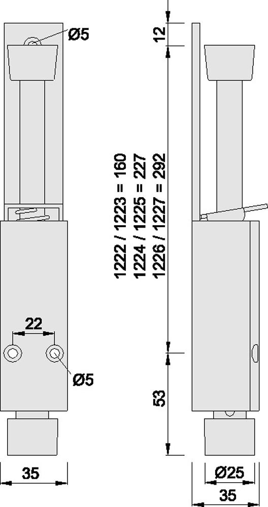 Türfeststeller 1224.02 Aluminium silberfarbig lackiert Hubhöhe 90 mm Türmontage