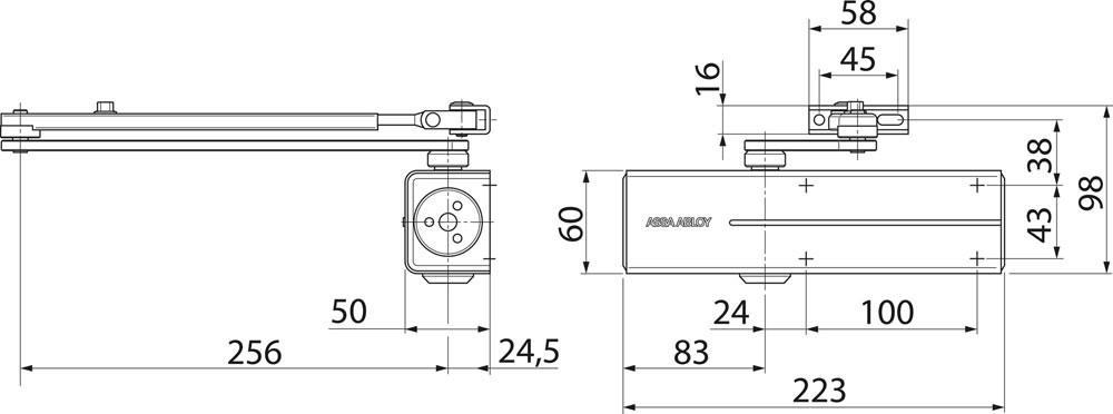 geprüft nach DIN EN 1154 · mit integrierbarer Montageplatte für Feuer- und Rauchschutztüren verwendbar · max. Höhenausgleich stufenlos 14 mm · Schließkraft stufenlos einstellbar · Schließgeschwindigkeit, Endschlag und Öffnungsdämpfung stufenlos von vorne einstellbar · DIN links und DIN rechts verwendbar · Lieferung inkl. Gestänge