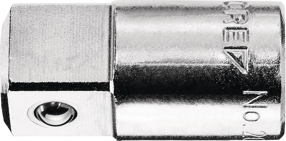 6,3 mm (1/4 ″)-Vierkantantrieb · für handbetätigte Steckschlüssel-Einsätze · mit Kugelarretierung · Vanadium-Stahl · verchromt · 6,3 mm (1/4 ″)-Innenvierkant auf 10 mm (3/8 ″)-Außenvierkant