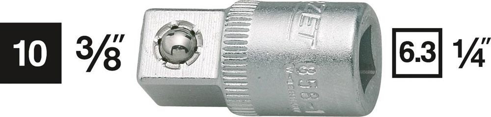 6,3 mm (1/4″)-Innenvierkant auf 10 mm (3/8 ″)-Außenvierkant · DIN 3123 / ISO 3316