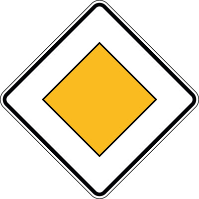 Verkehrszeichen nach StVO. Vorfahrtstraße, VZ-Nr. 306, 600 x 600 mm, Folie RA2