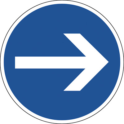 Verkehrszeichen nach StVO. Vorgeschriebene Fahrtrichtung hier rechts, VZ-Nr. 211, Ronde 600 mm, Folie RA2